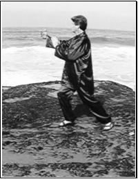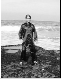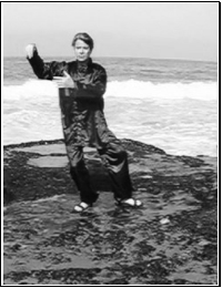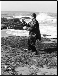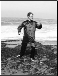 STEPPING: [Turn the Body Over Step] After Hit Gong, place the spine in a position to revolve for striking, and begin Parry. The thighs must have outward and inward drawing of silk.